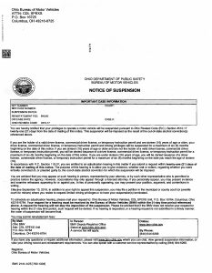 When an Ohio resident is convicted of DUI in another state, the other state transmits a report of the conviction to the Ohio Bureau of Motor Vehicles (BMV). The BMV sends the person a notice by U.S. mail. The notice informs the person that their Ohio driver’s license will be suspended.